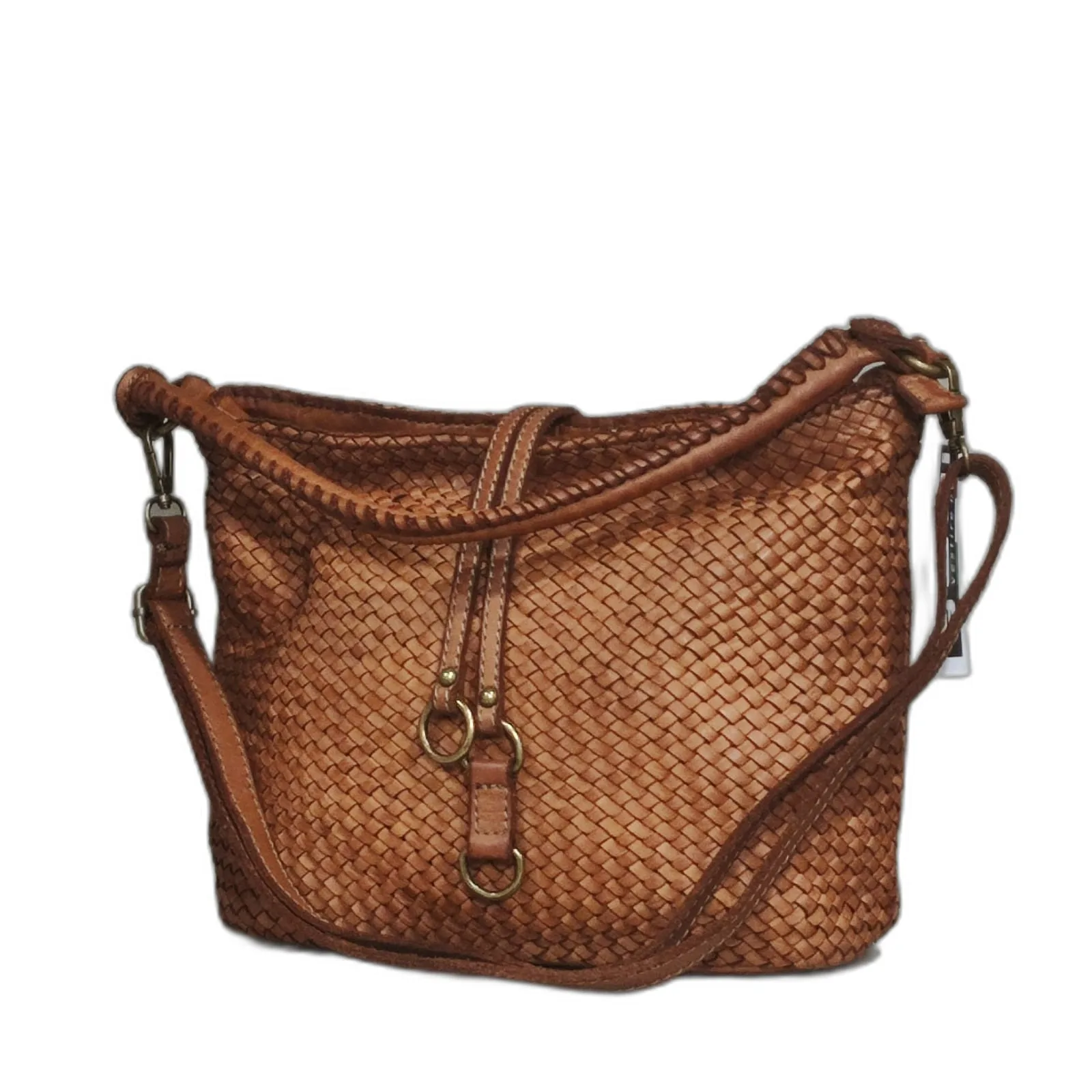 Borsa donna elegante in vera pelle intrecciata realizzata a mano con tracolla regolabile