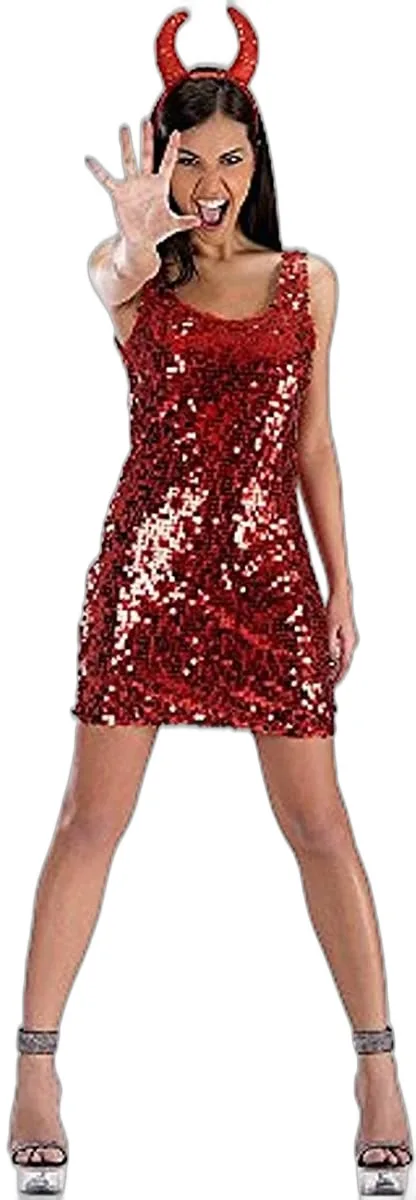 DIAVOLESSA DEMONE IN PAILLETTES – COSTUME HALLOWEEN CARNEVALE E FESTE A TEMA